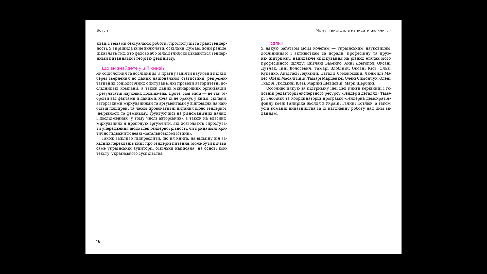 Я написала цю книгу, бо вірю: просвітництво — це шлях змін. Знання — не просто набір фактів, а інструмент, який дозволяє нам виходити за межі очевидного та ставити під сумнів те, що здавалося непорушним. 45 питань у цій книзі — не спроба дати вичерпні відповіді, а запрошення до розмови. Бо гендерна рівність починається насамперед з уміння ставити запитання до звичних уявлень і шукати на них відповіді.